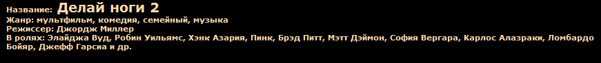 Название: Тачки 2 Оригинальное название: Cars 2 Год выхода: 2011 Жанр: мультфильм, комедия, приключения, семейный Режиссер: Джон Лассетер, Брэд Льюис Роли дублировали: Дмитрий Харатьян, Сергей Кузнецов, Леонид Каневский, Жанна Фриске, Леонид Ярмольник и др. Выпущено: США, Pixar Animation Studios / Walt Disney Pictures Продолжительность: 01:34:33
